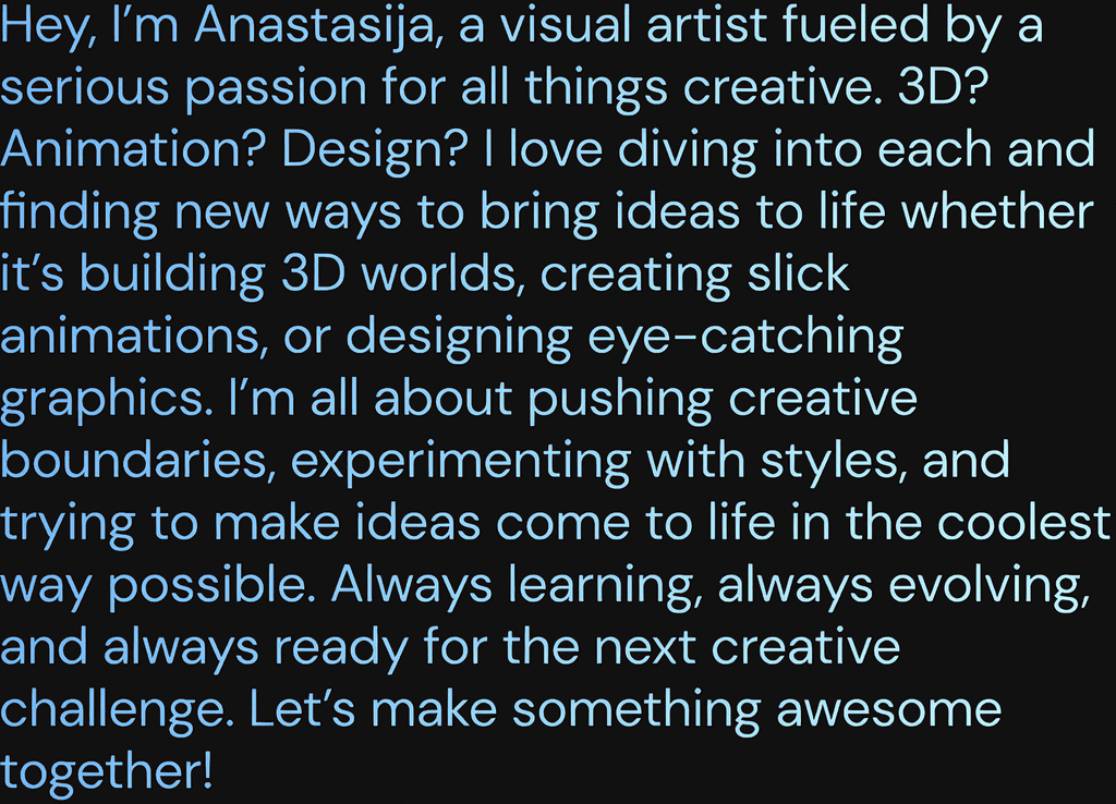 Over the years, I've worked on a mix of creative projects, from 3D modeling and animation to video editing, graphic design, and UX/UI design. Whether for academic purposes or professional gigs, each project has been an opportunity to experiment, learn, and push creative boundaries.