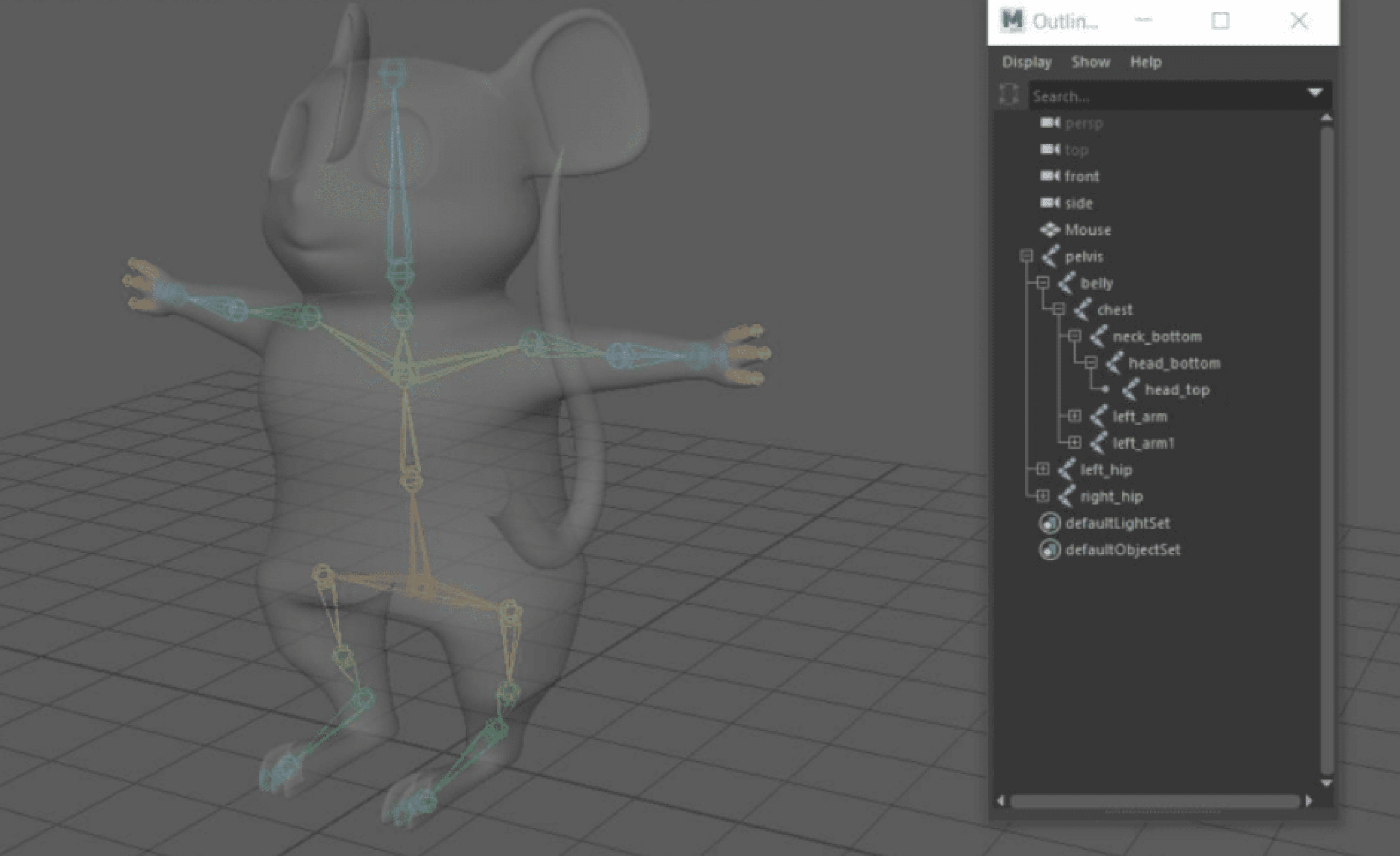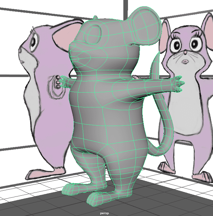 A low-poly mouse character modeled from front and side reference images. Fully rigged with adjusted weights to ensure proper deformation for animation. Created as an academic project using Autodesk Maya.